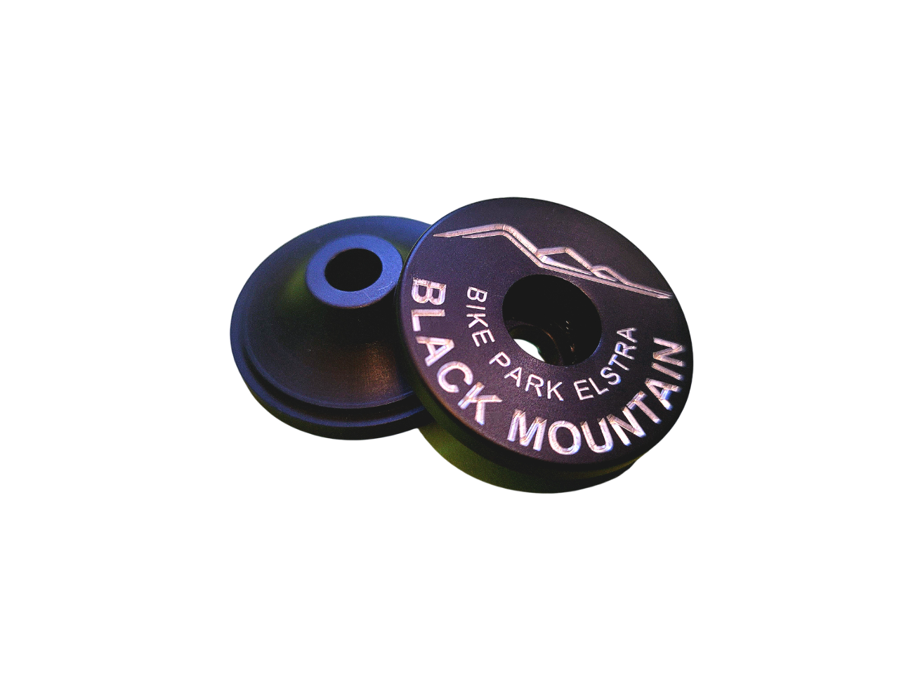 Die Black Mountain Bikepark Elstra Topcap besteht aus einer hochwertigen Aluminiumlegierung und wird mit einem schwarzen Eloxal veredelt.